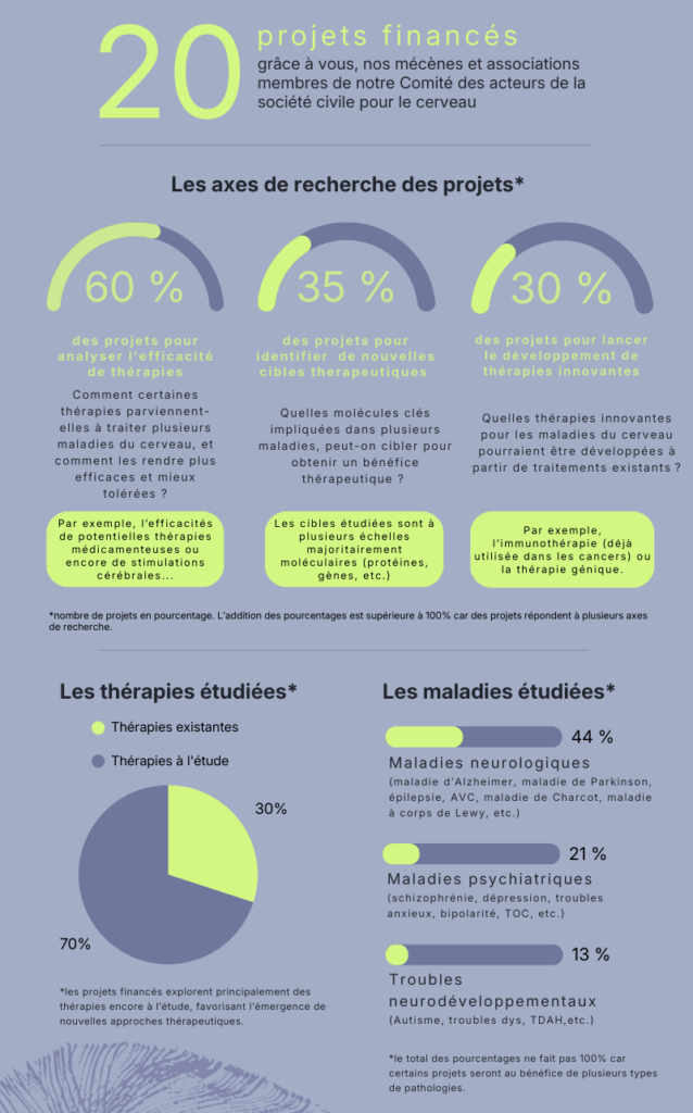 Mieux comprendre les similarités des maladies du cerveau pour mieux les traiter : tel était l’objectif du programme de recherche 2023 – 2025 de la Fondation « Au croisement des maladies du cerveau ». En 2025, la Fondation a clôturé son programme avec son appel à projets annuel visant à identifier des mécanismes communs aux maladies du cerveau pour développer des approches thérapeutiques transversales.